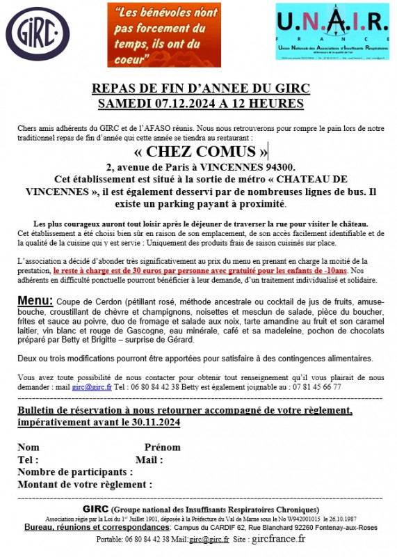 LE GIRC VOUS INVITE A SON REPAS DE NOËL 2024